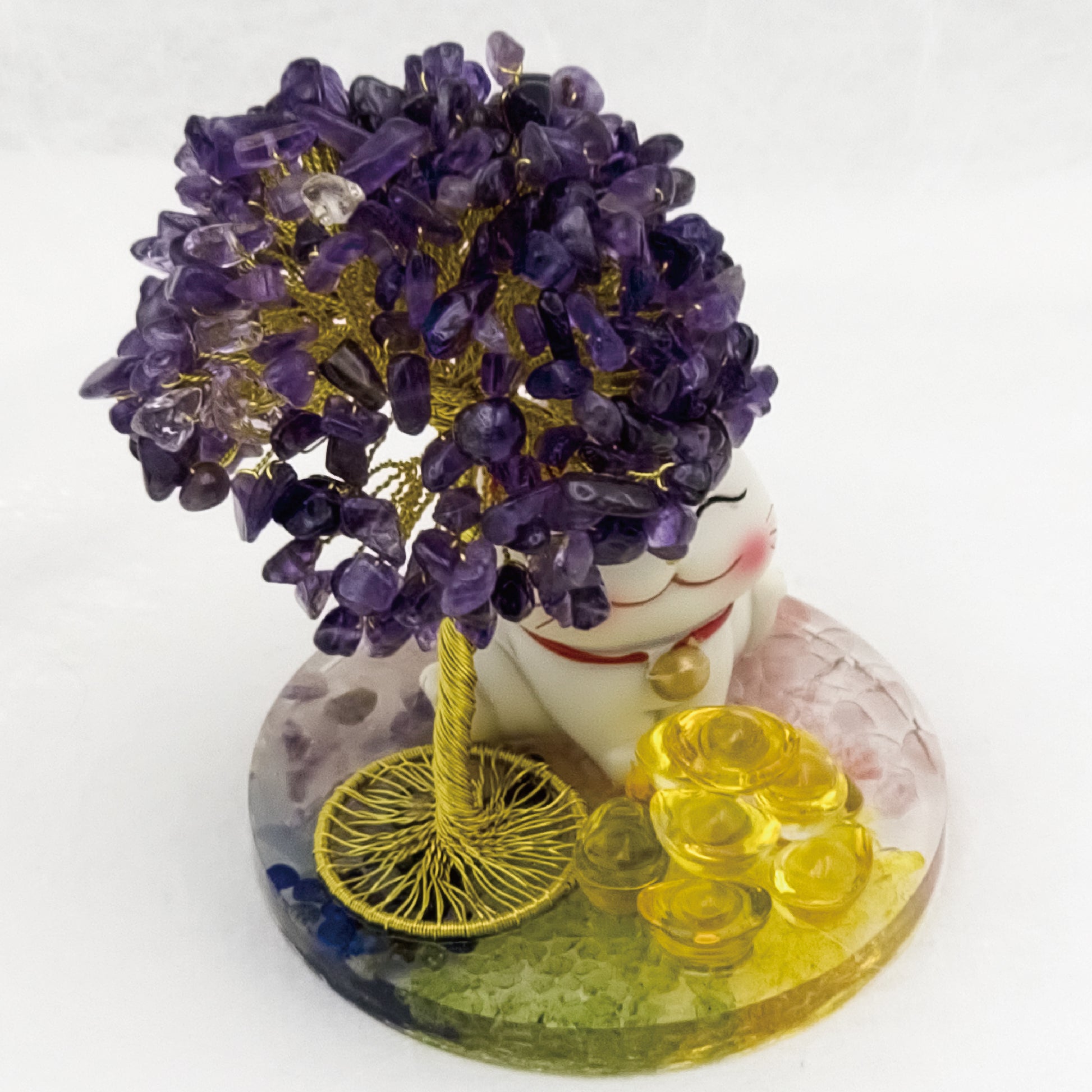 Amethyst Lucky Love Crystal Tree Money Cat & Nine Gold Ingot CLS @ Lucky Love Series